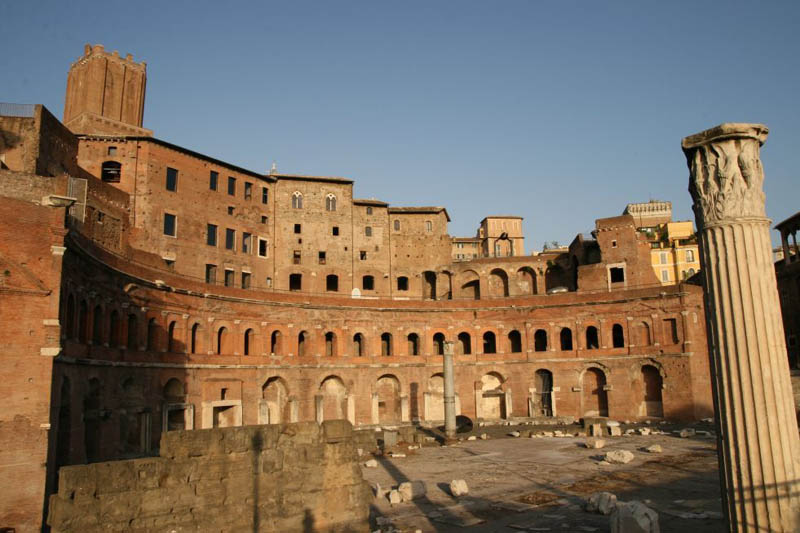 Trajan’s Market (Latin: Mercatus Traiani, Italian: Mercati di Traiano) is a large complex of ruins in the city of Rome, Italy, located on the Via dei Fori Imperiali, at the opposite end to the Colosseum. The surviving buildings and structures, built as an integral part of Trajan’s Forum and nestled against the excavated flank of the Quirinal Hill, present a living model of life in the Roman capital and a glimpse at the continuing restoration in the city, which reveals new treasures and insights about Ancient Roman architecture.